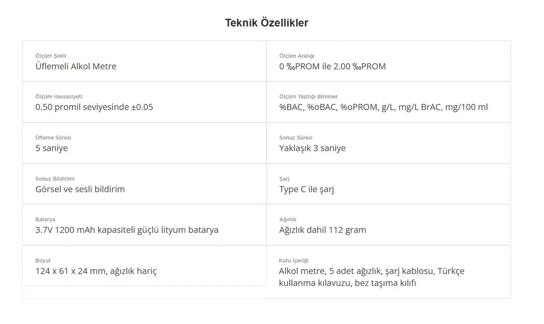 Profesyonel ölçüm aralığı sunan ALC-01 modeli 0 ‰PROM (Promil) ile 2.00 ‰PROM