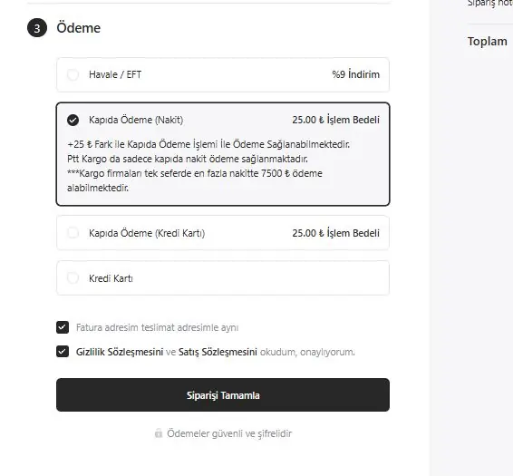 Tercihinize göre ödeme seçeneklerinden herhangi birini seçerek sipariş adımlarınızı tamamlayabilirsiniz.