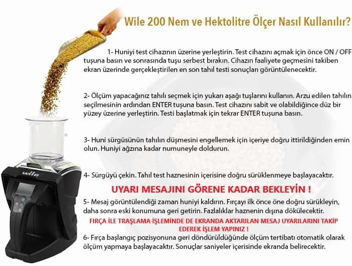 Wile Nem Ölçer; Ölçüm Aralığı= Tahıl ve tohum: 8-35% / Yağlı tohumlar için ise: 5-25% Aralağındadır.